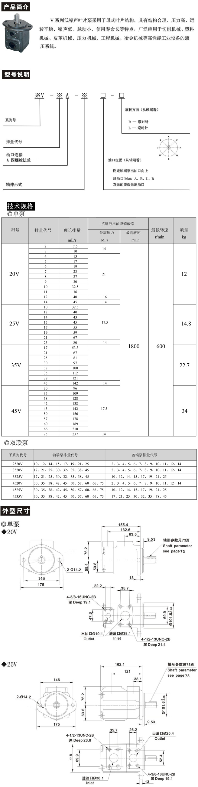 V系列高速高壓低噪聲子母葉片泵