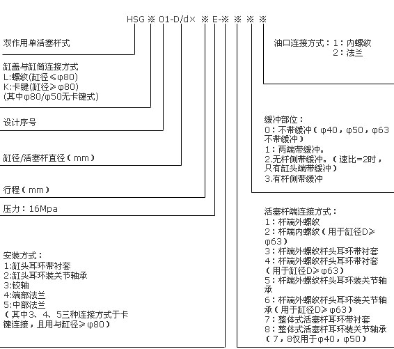 HSG型工程用液壓缸為雙作用單活塞桿式液壓缸。具有安裝連接方式多樣以及可帶緩沖裝置等特點(diǎn)。適用于工程機(jī)械、起重運(yùn)輸機(jī)械、船舶機(jī)械、冶金礦山機(jī)械等液壓系統(tǒng)。
