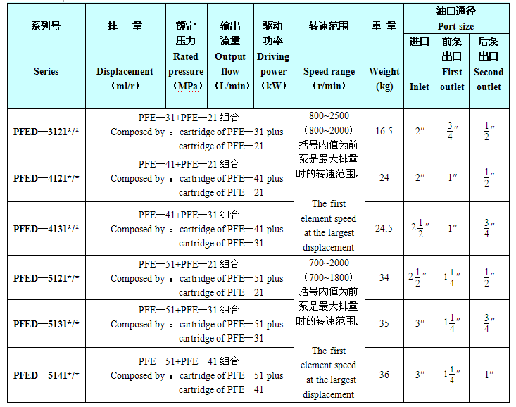 PFED 雙聯(lián)泵 PFED Double pump ★機(jī)芯 Cartridge